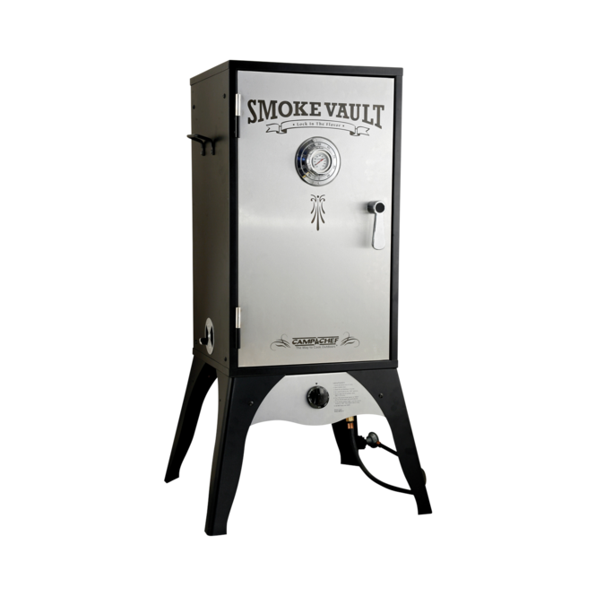 One jerky rack, two regular racks, and a water pan are inside behind the attractive stainless steel door. The camp chef 18 inch smoke vault propane box hd steel and stainless door smoker is a sturdy unit that is designed for cooking and smoking outdoors. As this model is smaller, it requires less gas to heat it up. You're probably itching to get started with fresh jerky, perfectly. So you should have this smoker up and running in just a few hours, similar to other camp chef products that have simple.